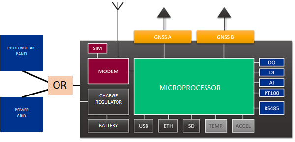 • Power Module: it provides power supply by alternate current (AC) and direct current (DC) from different sources, including photovoltaic panels.